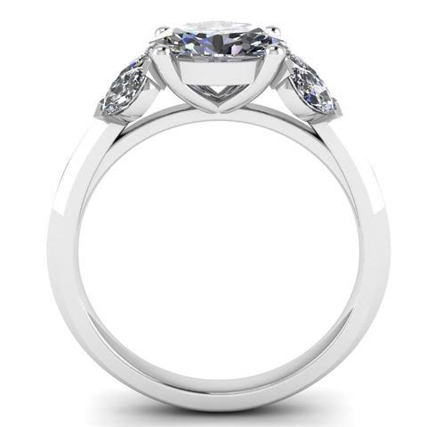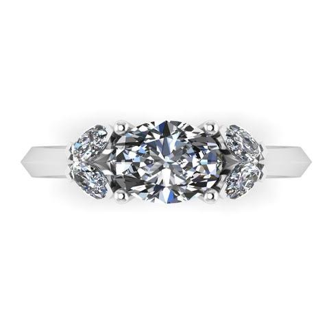 Centre brilliant round diamond with marquise shoulders set upon a knife edge band.